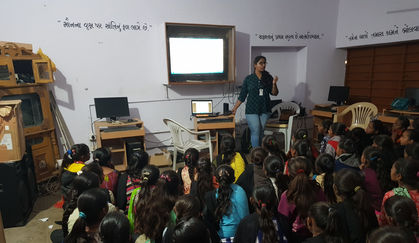 Participatory Life Skills Education sessions for adolescent girls at T.B. High School, Anand, Gujarat. Life Skills Covered: Self-awareness, Coping with Stress, Coping with Emotions; Some actvitites employed: River of Life, Stress Balloon
